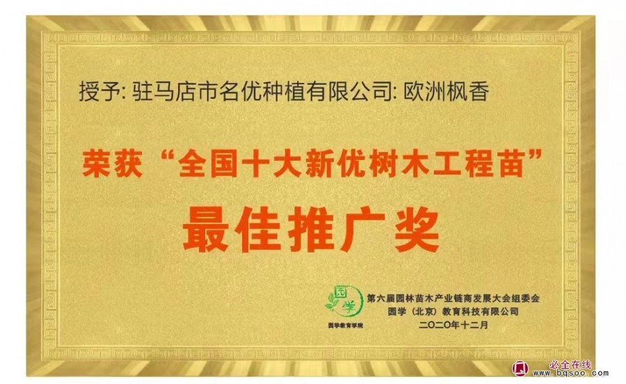 欧洲枫香产品介绍:北美枫香原种,十七世纪引入欧洲,通过多年优化选育而成。在河南驻马店表现:年生长量高度1米,粗度3年5公分,树干直而且壮不需要支杆,不用截干,抗病虫,特抗天牛,叶片和树干、树根都有香味,能适应酸醎度中等的任何土壤,岗地和洼地都能种植,每年10份开始变色,先紫后红至落叶两个月时间。变色条件,早晚温差10度,有光照,土壤水份百分之六十以上。零下20度至高温40度的地区都能生长良好,是行道树和公园绿化不可多得的新优彩叶品种。驻马店市名优种植有限公司供1~6年苗,全都是雄安新区寻找的原冠树。